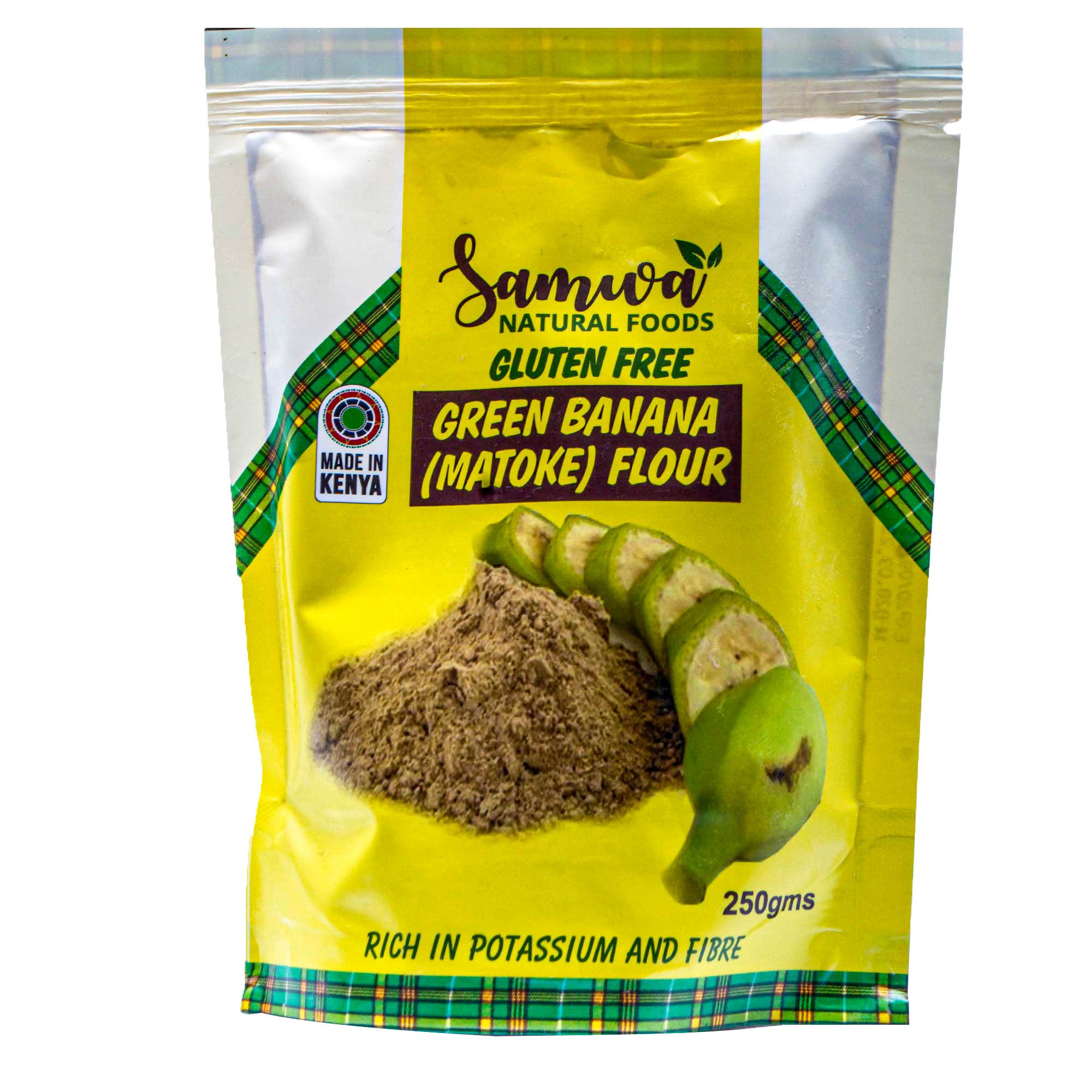 Gluten Free Green Banana Matoke Flour is available in 250g and 500g sizes for baking & cooking. Specialty gluten-free flours for baking, cooking and wholesome pantry staples. Available in 250g and 500g. Shop online from Samwa Naturals across Kenya.