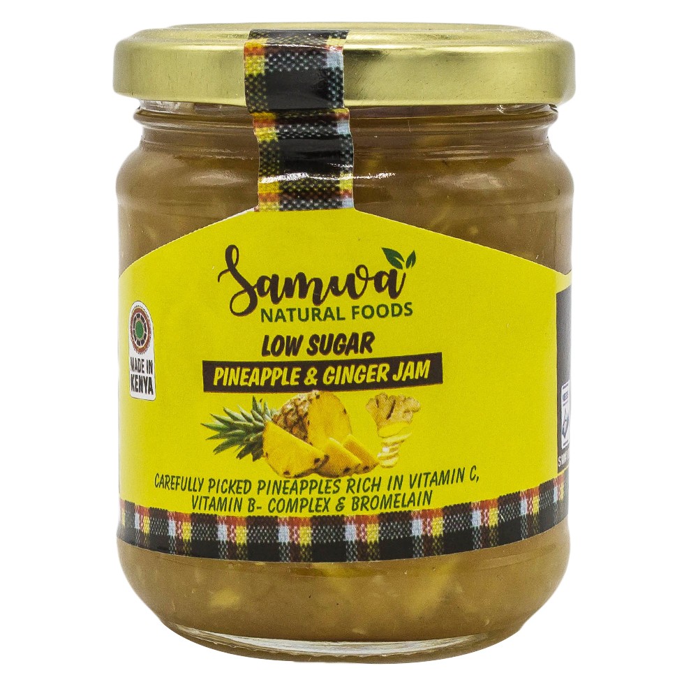Pineapple & Ginger Jam gives a bright tropical flavor with a warm ginger finish in low-sugar choices. Low-sugar fruit jams and breakfast spreads made for toast, pastries and gifting. Available in 200g and 450g. Shop online from Samwa Naturals across Kenya.